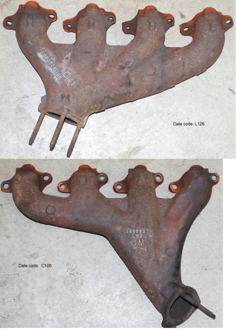 I recently removed the following manifolds from my 67 390HP roadster. Before restoring them, I wanted your expert opinion. Do I have the correct parts? I have referenced the TIM&JG and the NCRS archives and can verify that the casting numbers are correct. It is my understanding that the part changed configuration slightly from the '66 production to the '67. The RH date is C106 and the LH date is L126. I am most concerned with verifying the RH based on the what -- Mike McCagh #14 wrote Monday, 21 July 2003, "FYI there is a difference between 66 and 67 BB manifolds in that there is a teat-like protrusion on each side of the 66 manifolds tyhat the 67 and up lack." What/where is this teat?