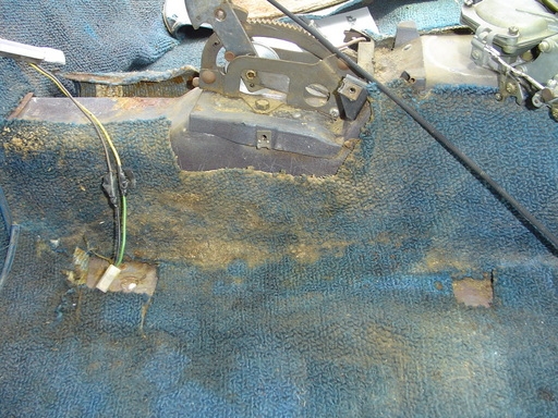 My old carpet is cut from front bolt to back bolt area with flap on the outside (inside being towards the center of seat. The back has a "V" cut so one can get to the 2 bolts in the rear. The TI/JG seems to say the cut is with the flap on the inside. The TI/JG also seems to say that the cut is not all the way such that the frame sits on the floor glass.