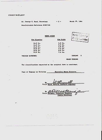 I would very much appreciate any information, including correct names and scope of duties of the two signers of this document from '64. I am researching an FIA homologation request for a '64 Chevrolet in the Touring Class.