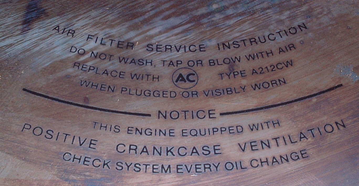 In any event, for any given day, the covers used on small block and big block air cleaners were the same. There were no differences, at all.In Appreciation of John Hinckley- Top