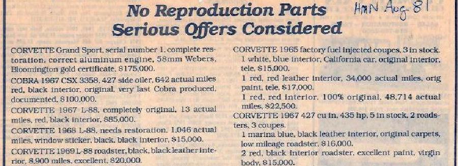Heck, how many of us had 15-25 grand to spend on a "toy" in those days much less a hundred grand for a Cobra or Grand Sport.