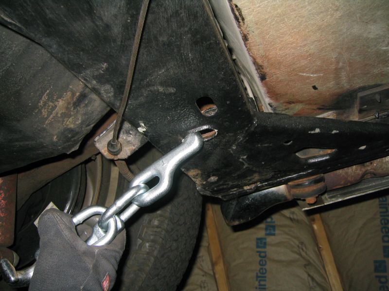 Can you tell me where to find the R hooks? It doesn't look like that hook would fit into the hole in the front crossmember hole either? I'm still unsure where to tie the car down in the front. Unless only one point in the center was used to hold down the front? I do like the idea of compressing the springs a little and holding the car by the frame. Thanks again Kevin- Top