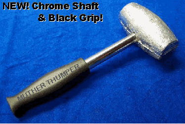 As for "one posting said the wheel should NEVER be on the ground while tightening the spinner" - I see this thought posted from time to time, and have to wonder if whomever posts that even OWNS, much less have ever installed, a KO - for one thing, just how would tighten the spinners on the front wheels, with nothing to stop them from spinning if off of the ground? As for me, I tighten the spinners (as described above) while the wheel is in the air by hand, and give them one love tap or two, then bring the car down and let the big lead hammer do its work with the wheel on the ground. I myself use a 6# lead hammer of the "****** Thumper" variety shown below. I am also quite shy about allowing anyone else to install my wheels - I don't think today's tire jockeys are at all familar with the process required.